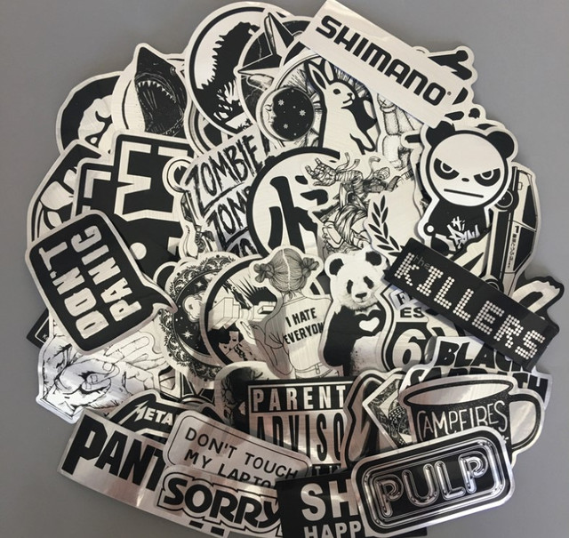 Набір вінілових наклейок стикерів Іммітація металу Популярні чорно-білі Стикербомбінг на автотелефон 50 шт.